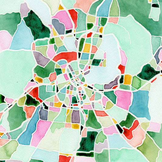Columbia, SC street map | South Carolina mosaic watercolor painting | Housewarming gift